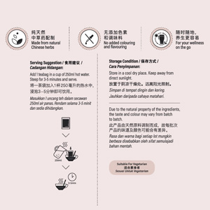 Serving Suggestion: Add one teabag into 250 ml of hot water and steep for 3–5 minutes before serving.