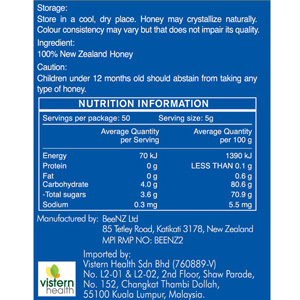 Store in a cool, dry place. Honey may crystallize naturally colour consistency may vary but that does not impair its quality
