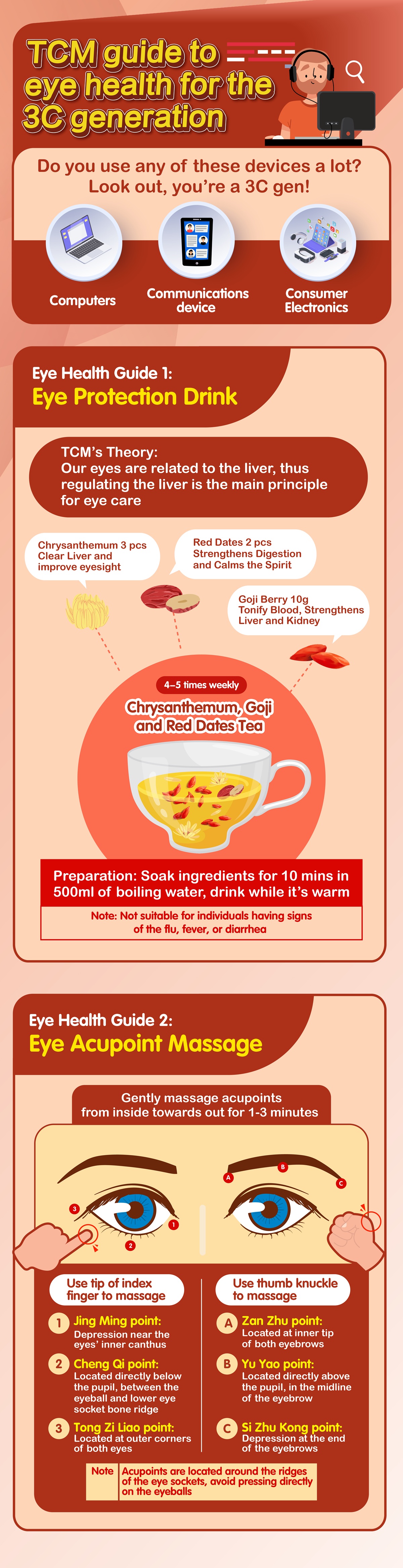 TCM’s Theory: Our eyes are related to the liver, thus regulating the liver is the main principle for eye care