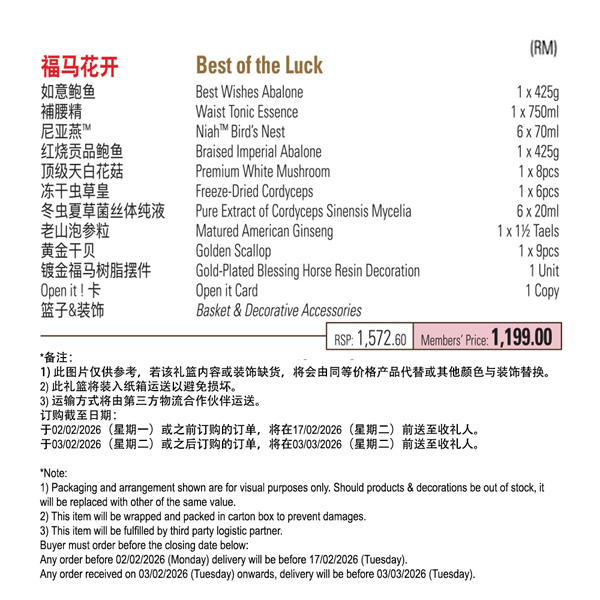 免运输费凡买上RM120*;礼篮与礼盒价值RM199或以上*(单位计算)
