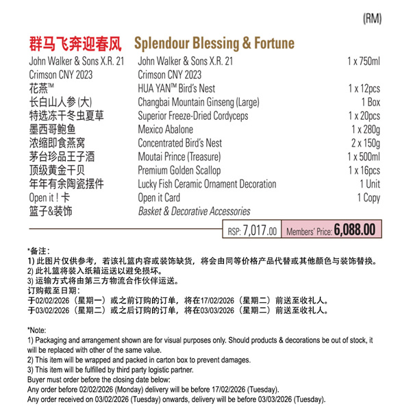 免运输费凡买上RM120*;礼篮与礼盒价值RM199或以上*(单位计算)