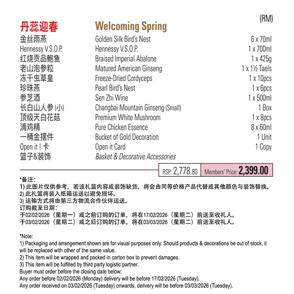 免运输费凡买上RM120*;礼篮与礼盒价值RM199或以上*(单位计算)