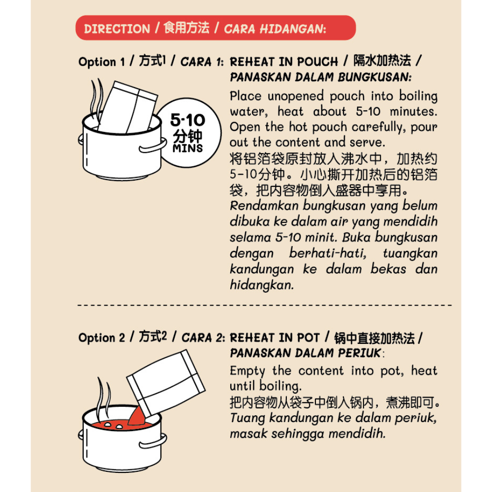 方式2:把内容物从袋子中倒入锅内,煮沸即可。