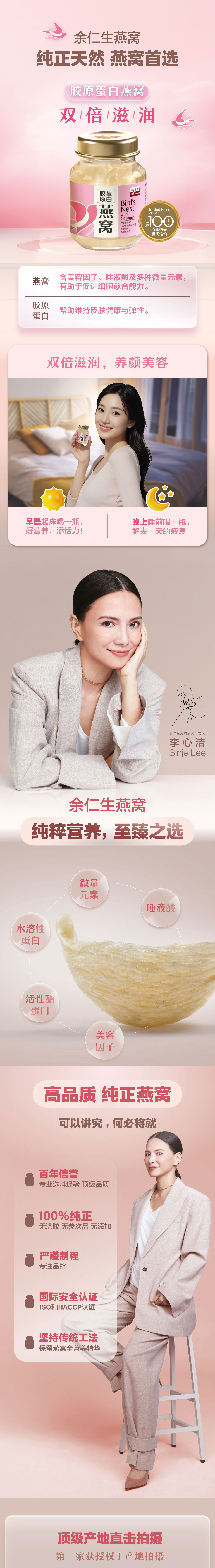 燕窝,是东方美人数百年来青春永驻的秘密武器,添加有助皮肤保持弹性的胶原蛋白,给予肌肤双重滋润,补充青春能量,展现活力光彩。