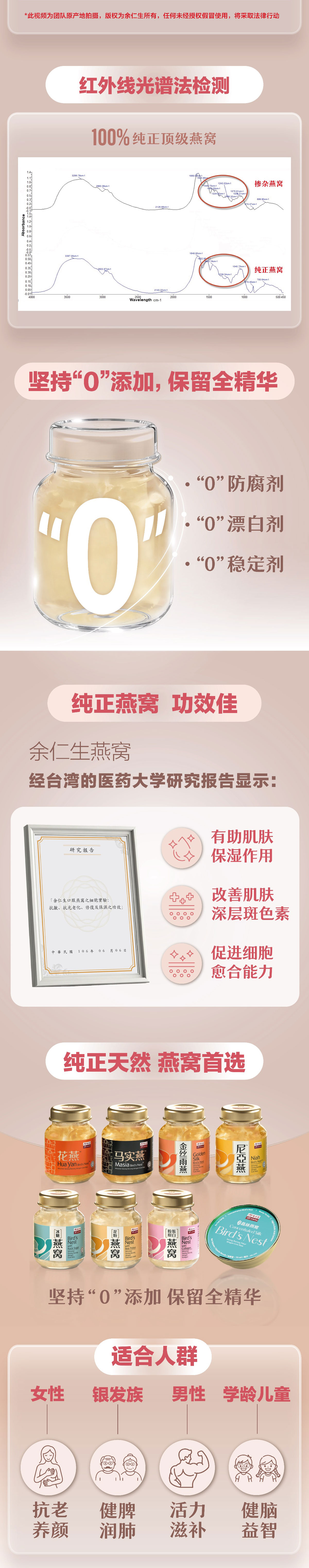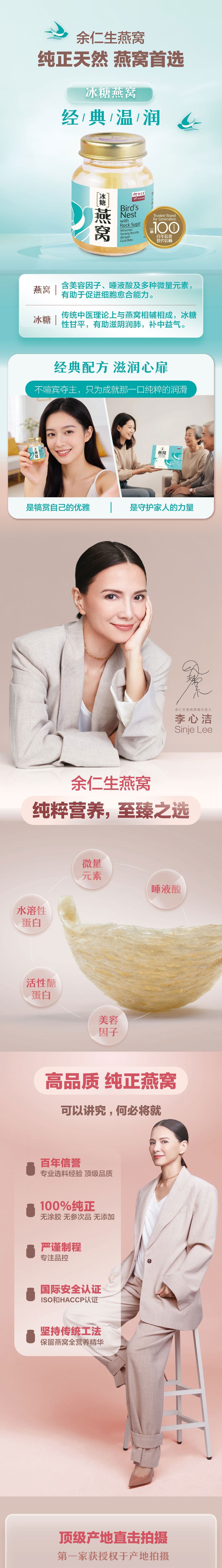 丰富的燕窝含量,适度的纯正冰糖,刚刚好的温润甜度,恰恰好的幸福额度。无论送礼或自用,皆能尝到那入口的相滑,入心的甜润。