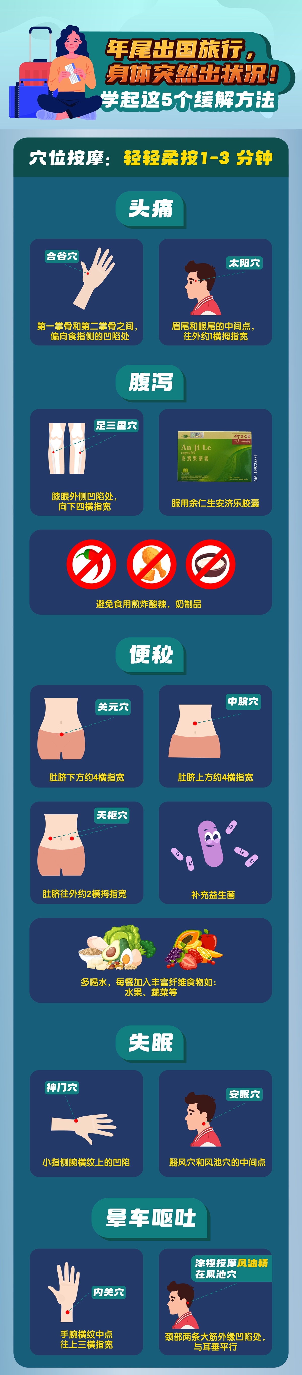 除了可以预备药,不妨试一下按摩穴位快速缓解不适和留意几个小贴士,可以更快康复,然后享受当地的美食美景。