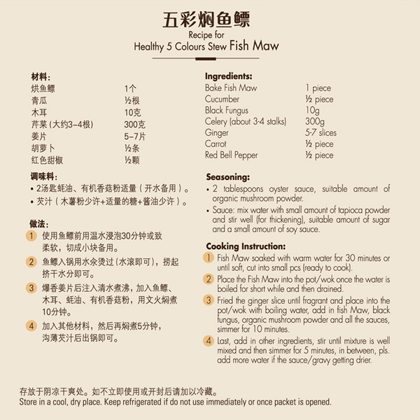 特级鱼鳔是从鱼腹中取出的气囊,为高蛋白质低脂肪食品,切开晒干后再经过烘干而成。余仁生特技鱼鳔色泽金黄,为上等鱼鳔首选。
