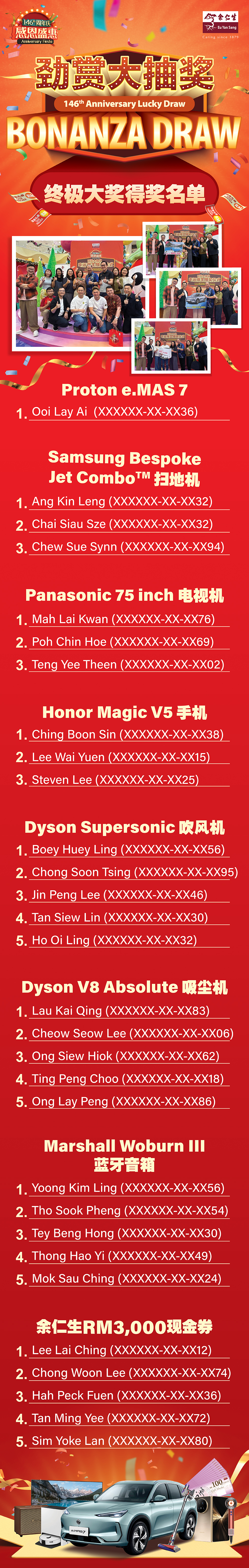 146周年庆终极大奖得奖名单