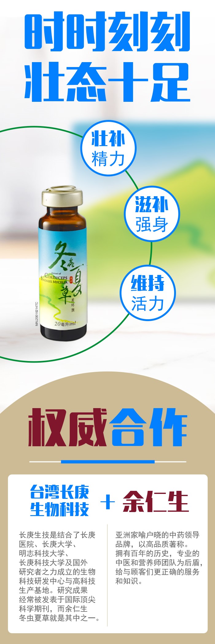 每一份量20毫升含冬虫夏草菌丝体(3.5克)和 水(16.5克)。