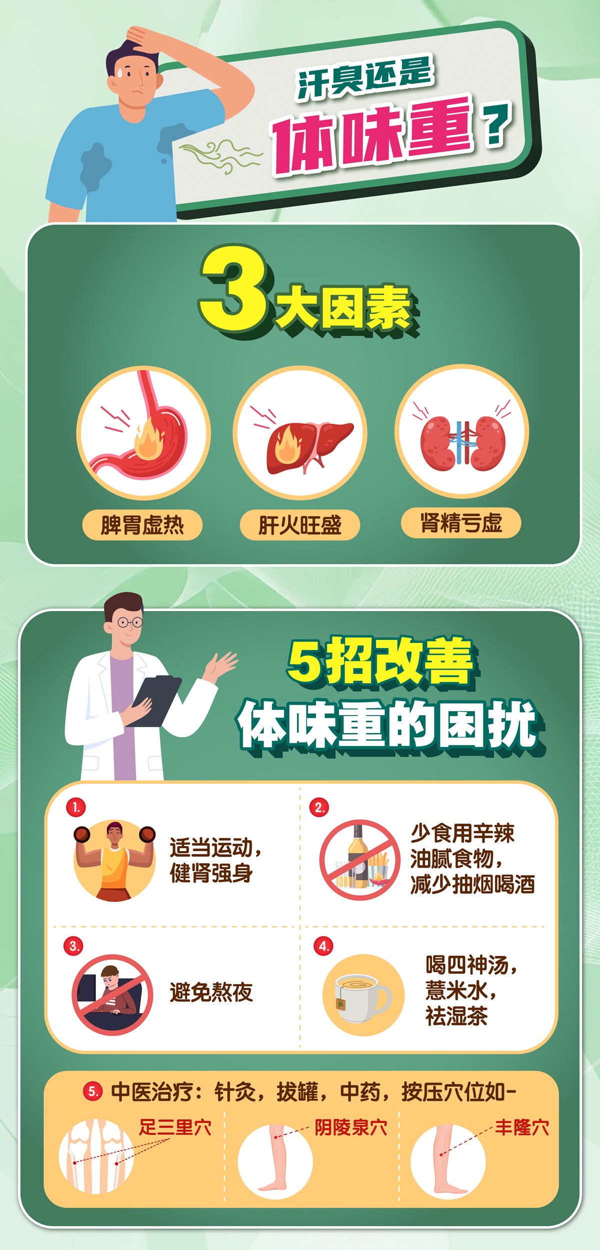 而在中医角度里,体味重有3大因素,多为湿气重和热交杂导致。